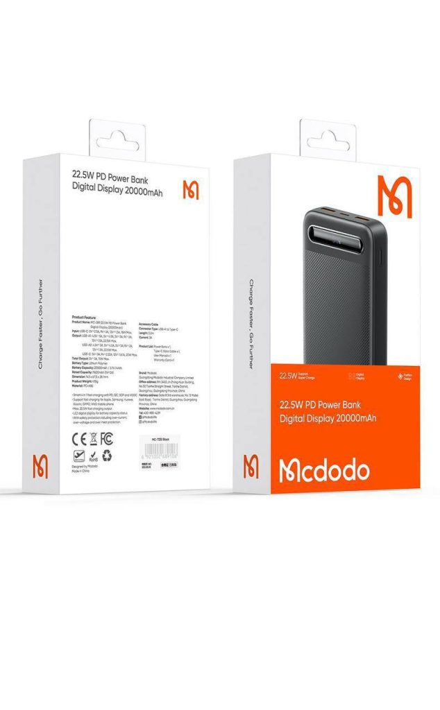 پاور بانک Mcdodo مدل MC3889 با ظرفیت 20000 میلیآمپر ساعت، یکی از گزینههای مناسب برای کاربرانی است که به دنبال یک منبع انرژی قابل اعتماد و با ظرفیت بالا هستند. در اینجا به ویژگیها و توصیفات این پاور بانک پرداخته میشود: